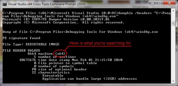 For command-line lovers, any version of Visual Studio, or even the Windows SDK offer a small utility named “DumpBin.exe”. Just start a command line and type “DumpBin /headers <path to your executable of dll>”, you should ends up with something like this: